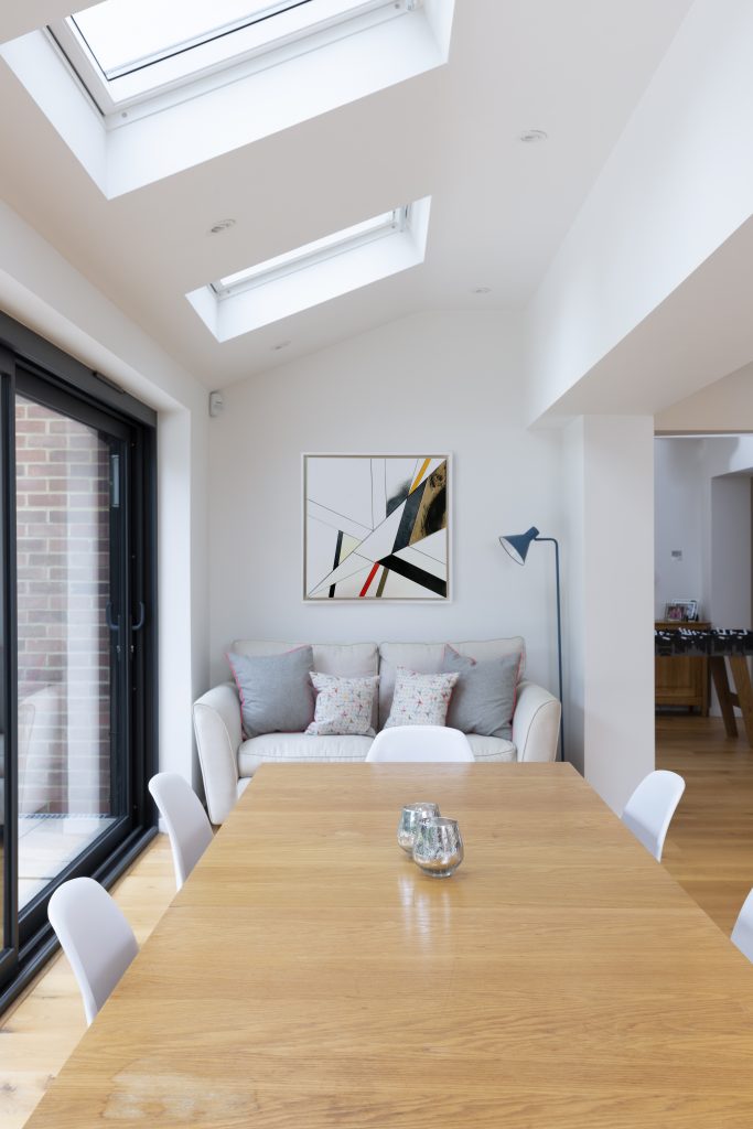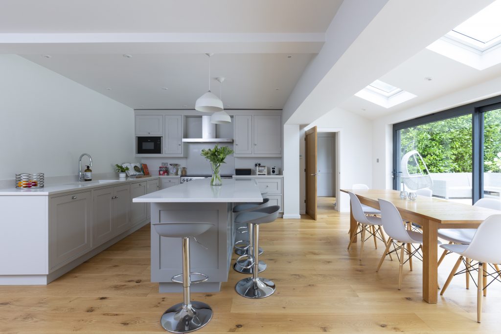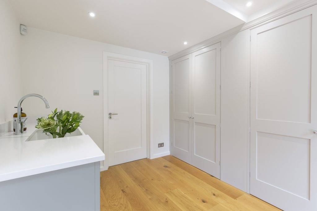 A phased full house refurbishment starting with a rear kitchen extension and opening the rear of the house up to the large garden. Included structural changes to the rear of the property to allow for a huge light filled kitchen diner, separate utility/ boot room and an outdoor dining terrace. Phase 2 included creating a master ensuite bathroom and teenage bedroom from an original storage space and Jack & Jill bathroom arrangement. Phase 3 is currently ongoing and includes a guest bedroom and family bathroom refurbishment.